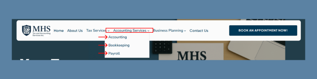 Please refer to the “Accounting Services” section in the website header above. There, you will find all available options in the dropdown menu, each with its own details.